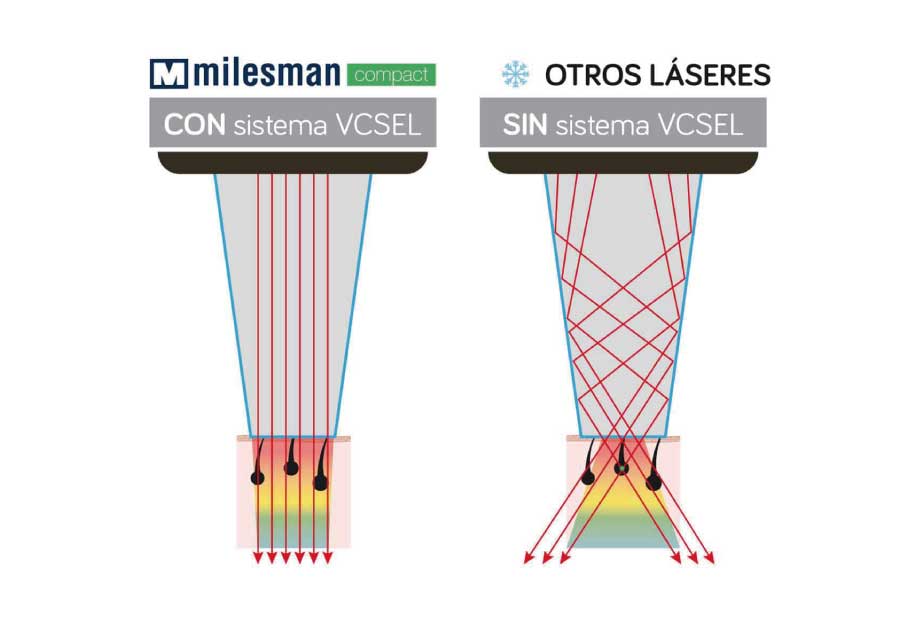 VCSELシステムを搭載し、皮膚に対して垂直にレーザーを照射。